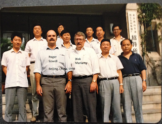 | Richard "Dick" Moriarty and Roger Sowell with Chinese refinery management at Yanshan Refinery Beijing, People's Republic of China, 1990 |